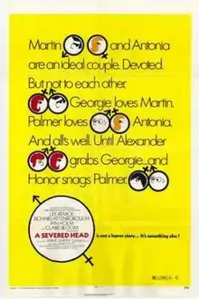A Severed Head is a 1970 British comedy-drama film directed by Dick Clement, and starring Claire Bloom, Lee Remick, Richard Attenborough, and Ian Holm. It is based on the 1961 novel of the same name by Iris Murdoch. [1]