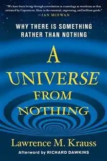 A Universe from Nothing: Why There Is Something Rather than Nothing is a non-fiction book by the physicist Lawrence M. Krauss, initially published on January 10, 2012, by Free Press. It discusses modern cosmogony and its implications for the debate about the existence of God. The main theme of the book is the claim that "we have discovered that all signs suggest a universe that could and plausibly did arise from a deeper nothing—involving the absence of space itself and—which may one day return to nothing via processes that may not only be comprehensible but also processes that do not require any external control or direction."[1][2]