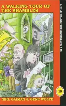 A Walking Tour of the Shambles (Little Walks For Sightseers #16) (2002), written by Neil Gaiman and Gene Wolfe, is a novel in the form of a tour guide concerning a fictional part of Chicago called 'The Shambles'. It guides the reader through such non-existent landmarks as The House of Clocks (see the official website), Cereal House (home of the Terribly Strange Bed), and Gavagan's Irish Saloon. A collaboration between Neil Gaiman and Gene Wolfe (cover by Gahan Wilson, with interior illustrations by Randy Broecker and Earl Geier), it was published with two different covers by the American Fantasy Press (one crediting "Gaiman and Wolfe", the other crediting "Wolfe and Gaiman"). Although Chicago doesn't have a Shambles, Philadelphia, for instance, does.[1]