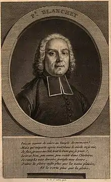 Abbé François Blanchet (26 January 1707 – 29 January 1784) was a French littérateur, or Intellectual. He spent his younger years in a Jesuit (Society of Jesus) order. Blanchet was the author of Apologues and Tales, a highly esteemed work.