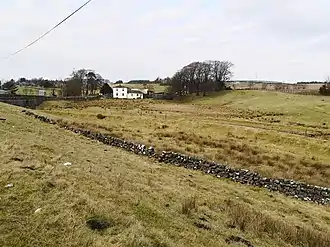 The minister, being homeless,[74] eventually found a house to rent at Netherfauldhouse,[75][76] about 3.5 miles south east of Lesmahagow. Mr Robert Frame, a surgeon and member of the Parish Church of Lesmahagow,[77] granted the use of a field for the congregation to meet for worship at "the Muttonhole",[78][76][79] between Ballieshall farm (or Bellishole)[80] and Folkerton Mill[81] on the Poniel water, some 3.6 miles south east of the centre of Lesmahagow and accessible by roadway from Lesmahagow. Being a good summer, the congregation worshipped in the open air throughout the summer, attracting interest from the people of nearby Douglas, Rigside, Douglas Water and Coalburn, a situation which continued for some time, as open air preaching continued here even after the building of Abbeygreen Church was completed.