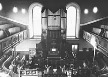 The North Church in Lesmahagow was a congregation of the Secession or Burgher Church[45] (an "Auld Lichts" congregation) which received separate pulpit supply from 1814 and was formed a session on 5 May 1816 from the Original Burgher congregation in Carluke.[46] This formation of a session was to benefit the people of Lesmahagow who worshipped with the Carluke congregation and to allow them to call a minister. The North Church inducted its first minister on 1 March 1820; a newly licensed minister, the Rev. William Logan,[47] born 1789 and licensed to the ministry in January 1819.[48][49][50] This branch of the Original Secession church reunited with the Church of Scotland on 11 September 1839 and on that union, a third charge of the Church of Scotland was created in the Lesmahagow Parish.