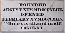 The congregation was formed during the Disruption of 1843. Its foundation stone was laid in August 1843 and the church opened on 15 February 1844. The church building,[5] its manse[6] and grounds[7] are directly west of the Glebe Park[8] on Abbeygreen. The congregation of Abbeygreen was formed out of the Parish Church of Lesmahagow by secession from the Church of Scotland in 1843. Lesmahagow Old Parish Church was built, in its present form,[9] in 1804,[10] at the site of the medieval Lesmahagow Priory.[11]