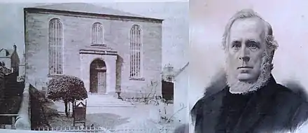 Rev. Dr. Andrew Boreland Parker arrived as minister of the first charge of Lesmahagow in April 1839. As noted in the history of the North Church, the branch of the Original Secession Church to which the North Church belonged merged with the Church of Scotland on 11 September 1839, forming the third charge of the Church of Scotland in Lesmahagow. However, the Duke of Hamilton refused patronage for the incumbent minister of the North Church, the Rev. William Logan.[62] Whatever the reasons for this refusal, it was a clear action against both the minister and the congregation as they were constituted under God. Despite this refusal, the "Burgher" congregation, now part of the Church of Scotland, continued to worship in its own building with the Rev. William Logan as minister. The church building was, what came to be called, the Jubilee Hall on Bloomfield Road in Lesmahagow.[63][64]