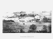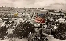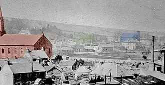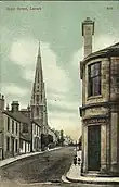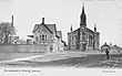 The Church of Scotland congregation at St. Leonard's was constituted on 27 May 1839 and the church was built and opened in 1841 on Bannatyne Street, adjacent to the site of the soon to be Lanark railway station. The church was situated just east of the station entrance and between the station buildings and Bannatyne Street. The station buildings were built in 1855 by the Caledonian Railway. Thomas Stark (b.1803) was ordained as a minister to the congregation on 29 June 1841 and became a minister of the Free Church in 1843. Dispute between the Church of Scotland and the Free Church over the property, led to the building being closed from 1845 to 1851[56][57] and the Free Church congregation bought the Associate Burgher church in Hope Street, Lanark[58][59][39] and developed it for the needs of the congregation.