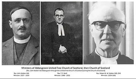 | 1929 | Rev. John Walker | Abbeygreen joins the Church of Scotland along with the majority of the United Free Church of Scotland | 2/10/1929 |