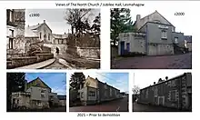 Following communication of the decisions of the first Presbytery meeting, the North Church congregation decided to hear the Rev. John Milwain,[85][46] a preacher from the nearby Reformed Presbyterian Church at Ponfeigh,[35][86][87][88] near Douglas Water,[89] on the Sabbath day (Sunday) the Free Church had chosen to preach it vacant. The North Church session and congregation called Rev. Milwain, and on his acceptance of the call the North Church transferred (both property and congregation) to the Reformed Presbyterian Church with a portion of the congregation choosing to unite with Lesmahagow Free Church.[90][46][91] The transfer was completed on 4 March 1844 and the ministry was shared between Ponfeigh and Lesmahagow North Church for a time until moderation was granted on 28 April 1845. On 10 August 1846, Rev. McMeekin (or Macmeeken) was called as minister to the North church and ordained on 30 December 1846.[92] However, due to financial difficulty, the North Church congregation was dissolved in 1869[46] and therefore did not survive to the time when a majority of the Reformed Presbyterian Church united with the Free Church of Scotland in 1876. Subsequently, the church building was modified and became the village hall, and from 1887, the Jubilee Hall,[93] at the celebration of the Golden Jubilee of Queen Victoria. The building was demolished to make way for a house build in late August 2021.