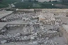 In May 2012, a four-day survey was conducted, combining an extensive walking survey with limited shallow (up to 10 cm) excavation in six areas spread around the site.[10] The survey showed that there was occupation in the Early Bronze [EB] II-III, Middle Bronze [MB] II, Late Bronze [LB]I-II, Iron Age I-II, Persian, Hellenistic, Byzantine, Early Islamic, Crusader, Mamluk and Ottoman periods. The survey also revealed that the lower part of the tell in the south has an outcropping of bedrock running through much of its center, indicating that the ancient remains in this part of the site should be sought around its perimeter.