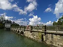 Aberdeen is served by Pok Fu Lam Road, Aberdeen Tunnel and Nam Fung Road through Wong Chuk Hang. Nam Fung Road connects Deep Water Bay Road, which also connects Wong Nai Chung Gap Road to Happy Valley. A bridge called Ap Lei Chau Bridge links Aberdeen with Ap Lei Chau over Aberdeen Harbour.