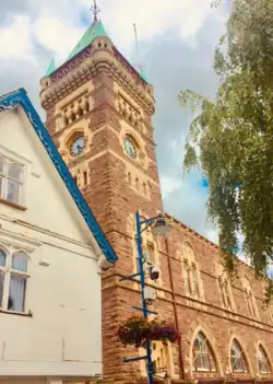Abergavenny Town Hall (Welsh: Neuadd y Dref Y Fenni) is a municipal building located on Cross Street, Abergavenny in Monmouthshire, Wales. The town hall, which also houses the town's market, is a Grade II listed building.[1]