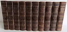 The published work, Abraham Lincoln: A History, has an alternation of parts in which Lincoln is at center, and discussions of contextual matters such as legislative events or battles.[14] The first serial installment, published in November 1886, received positive reviews, though some, including Herndon, considered the contextual sections dull.[15] Life magazine proposed a party game, to locate five references to Lincoln in a given installment, assuming there were any to be found.[16] When the ten-volume set emerged in 1890, it was not sold in bookstores, but instead door-to-door, the practice followed then by noted authors like Twain. Despite a price of $50, and the fact that a good part of the work had been serialized, five thousand copies were quickly sold.[17]