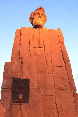 The Lincoln Monument is a bust of Abraham Lincoln by Robert Russin, 12+12 feet (3.8 m) high and resting on a 30-foot-tall (9.1 m) granite pedestal,[1] at the Summit Rest Area on Interstate 80 east of Laramie, Wyoming. Russin originally erected the sculpture in 1959 nearby on Sherman Hill, overlooking the old U.S. Highway 30 (Lincoln Highway).[2] In 1969, after Interstate 80 was built, state officials moved the monument to become a centerpiece at the Summit Rest Area and Visitor Center between the cities of Cheyenne and Laramie.[1]