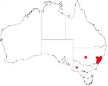The shrub is found in New South Wales mostly from around the Morisett area in the north down to Berrima and the Illawarra region and out to the west as far as the Blue Mountains with another population found in the Hunter Valley and Morton National Park. It grows well in sandy soils as a part of heathland and dry sclerophyll forest communities.[4]