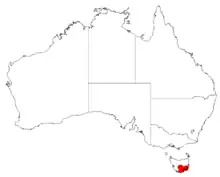It is endemic to southern parts of Tasmania where it is mostly situated along the banks of the Derwent River and a few of its lower tributaries including the Broad and Tyenna Rivers.[2] It is also found along the Carlton River and Prosser Rivers and their tributaries also[1] to the north and east of Hobart.[2]