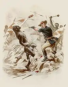 A depiction of Hamilton-Browne during the action from his own 1912 book of his experiences in Southern Africa