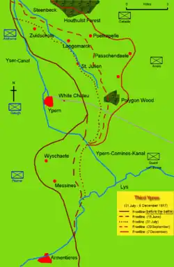 Map showing Allied advances in the Ypres Salient, 1917 (expandable)