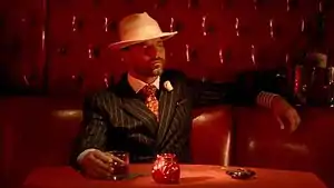 A screenshot from the music video, depicting Martin as a gangster.
