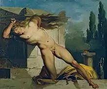Croesus came to Adrastus then to ask him for a favour, asking that he guard and protect his son on the hunt, and Adrastus accepted and accompanied Atys there. Upon finding the boar, the party surrounded it in a circle and hurled spears at it; however, Adrastus missed his target and struck Atys a mortal blow. When the group came back bearing Atys's body, Adrastus held his hands out to King Croesus in supplication – he begged that he himself be ritually slaughtered over the prince's body, saying that he could no longer go on living with the blood-guilt of yet another person on his hands. Croesus refused him this, saying this was vengeance from the gods, not Adrastus's personal fault; nevertheless, Adrastus killed himself.