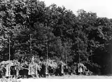 The Luftwaffe was essential in the kind of operations the Axis' ground forces were going to perform. In the Inter-War period, the Luftwaffe developed its communications, aircraft, training programs, and to an extent its logistics to support mobile operations. Its primary mission was not direct close air support but operational-level interdiction.[14] This entailed attacking enemy logistics, communications and air bases. Air strikes on Soviet war-making potential were forbidden by Hitler. It made little sense to destroy industry that would soon be in Axis hands; the German High Command (German: Oberkommando der Wehrmacht, OKW) did not believe the USSR could transfer its industry to the Ural Mountains. Counter-air operations were considered more important. In order for the Heer and the Luftwaffe's bombers to operate effectively in their roles, the first task of the Axis aviation was to eliminate the Soviet Air Force and deny the enemy the means to interfere with their operations. Once this had been carried out, close air support could be rendered to the ground forces.[15] This had always been a core tenet of Luftwaffe doctrine.[16] Once the A-A line had been reached, the Luftwaffe was to destroy the surviving factories in the Urals.[17]