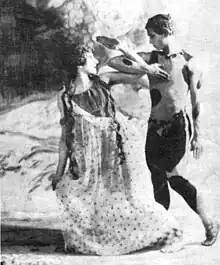 In spring 1913, the ballet was performed in Vienna, where it again had a cool reception, though not so bad as Petrushka, which the orchestra of the Vienna Opera House initially refused to play because they disliked the music.[25] The company returned to London, where the response was completely different and both ballets were well-received. During its first performance, there was some hissing in the audience, but the majority favoured it, and it received an encore once again. The Times described Nijinsky's performance as "extraordinarily expressive," and complimented the ballet on its ability to appeal to the audience in a way the public had never seen a ballet do before.[26] Writing in the Daily Mail, music critic Richard Capell said, "The miracle of the thing lies with Nijinsky – the fabulous Nijinsky, the peerless dancer, who as the faun does no dancing."[27] Capell goes on to praise his acting as well as the single leap which he deems an "illumination" of the faun's dichotomy between man and animal.[28]