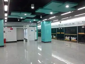 It is available to enter the station via escalator, elevator or stairs. After passing through the wicket with security check machines installed in front of it and going downstairs, the platform of Line 12 going two ways (toward Qixin Road and toward Jinhai Road) can be seen.