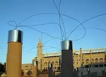 In March 1980, UTSUROI, the first work of Miyawaki's signature Utsurohi series was installed in Hikoda Children's Park in Ichinomiya, Aichi Prefecture.[1] In the Utsurohi series, Miyawaki attempted to achieve a form that excludes any sculptural weight. After a period of material search, she settled on steel wires for some time before discovering that piano wire, made of stainless steel, turned out best suited for her purpose. Through Mukai of Gallery Mukai, Miyawaki was introduced to Mr. Murayama who was the president of a company that makes piano wire. By shaping and suspending the wires in the air, the artist granted the sensation of motion to her work. The wires are both strong yet could also move at the slightest force such as a breeze. These sculptures negotiate with the immediate surrounding and can change in their forms in many ways, echoing the Japanese concept of "utsuroi," which points to "swift change," or "transience."[12][13]