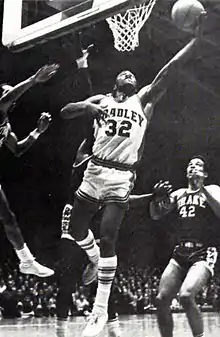 Smith was given offers to attend USC and Notre Dame,[4] but he chose to attend Bradley University as a basketball and baseball player. Smith spent four years at Bradley, though his time in college was interrupted by a two-year stint in the United States Army.[5] As a college basketball player, he scored over 1,000 points for Bradley and was named first team All-Missouri Valley Conference in 1971 during his senior season.[5] His college success was honored in 2004 when he was selected to Bradley's All-Century team.[4]