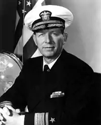 Mumma was promoted to rear admiral in 1954, and assumed command of the Mare Island Naval Shipyard. He became responsible for celebrating the 100th anniversary of its founding by David Farragut in 1854. However, his most important task was converting the shipyard over to the construction of nuclear submarines. This involved extensive retraining of the shipyard's personnel.[22] His tour of command was a short one, for in 1955 he became chief of the Bureau of Ships.[23] Disappointed with the performance of the USS Nautilus and the Skate-class submarines, he pushed for the adoption of the single screw and teardrop hull. The result was the Skipjack-class submarine. The George Washington-class submarines that followed were a development of the Skipjack with Polaris missiles. He also oversaw the design of the USS Enterprise, the first nuclear-powered aircraft carrier, and its escorts USS Long Beach and USS Bainbridge.[24]