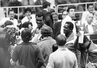 ![]() Alcides Sagarra (center right) and Teófilo Stevenson meeting with the press at the Olimpiyski Sport Complex during the 1980 Summer Olympics | |||||||||||||||||||||||||||||||||||||||||||||||||||||||||||||||||||||||||
