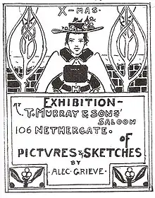 He began studying art at Dundee School of Art in the High School of Dundee and first exhibited his work with the Dundee Art Club in 1888. Befriending the artists John Duncan and Stewart Carmichael, he moved to London at around the same time as them, working both as a commercial artist for various publishers and exhibiting at the Royal Academy of Arts.[1] Around 1889 he went on to further study at the Académie Colarossi in Paris.[2] Grieve returned to Dundee in 1890, showing at the Dundee Fine Art Exhibition that year and joining the Graphic Arts Association soon after, becoming one of the most prolific contributors to the Association's annual exhibitions[2]