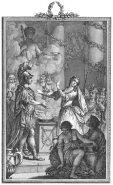 The libretto tells the story of the Indian campaign of Alexander the Great and his defeat of king Porus in 326 BCE at the Battle of the Hydaspes. After the battle the two kings were reconciled and Alexander left Porus as ruler of his kingdom. The action takes place on the banks of the Hydaspes, where Alexander's camp stands on one side of the river and the residence of Cleofide on the other.[1][4]