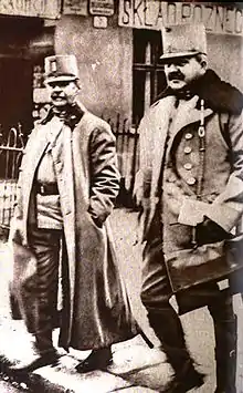 A close associate of the army chief of staff Conrad von Hötzendorf, Krobatin was appointed Imperial and Royal Minister for War on 12 December 1912 and as an integral member of the "war party" gave his full backing to the hawkish element in the military in their calls for an immediate attack on Serbia following the Assassination of Archduke Franz Ferdinand on 28 June 1914 and the July Ultimatum.[3] With the outbreak of the First World War, Krobatin was responsible for the task of harnessing the economies of industrial Austria and agrarian Hungary to ensure the now mobilised military was supplied with vital arms and munitions as well as increasing industrial efficiency to meet the needs of a state with a large cohort of its industrial population no longer available for industrial and food production given their enlistment for war.[4] According to a number of sources, Krobatin struggled in his task for the first two years of the war, and although he never really harnessed the economy efficiently, he succeeded in tripling the level of artillery available at divisional level.[3]