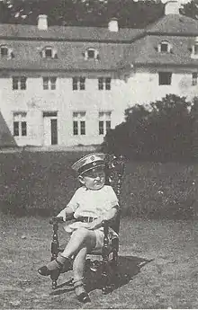 Since his grandfather, Prince Richard (1843-1916) and father, Prince Richard (1872-1918) both died toward the end of the Great War, Alexander became the head of his branch of the House of Dohna before World War II.[2] The Kingdom of Prussia had incorporated the lands of the various branches (Lauck, Schlobitten, Reichertswalde and Schlodien-Carwinden) into a privileged family trust in 1840, of which Alexander became a primary beneficiary.[2] Alexander was also the male heir of the Schlobittens, entitled by hereditary grant of 1 January 1900 to bear the title of Prince, as well as Burgrave, and the style of Serene Highness, titles recognised post-monarchy by Germany only as part of his surname.[2] (The other two surviving branches of the Dohna-Schlobitten line were never elevated to princely status; the family historically carried only comital rank, their burgravial fief never having been declared an Imperial State within the Holy Roman Empire.)