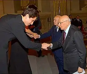 - ↑ "Video: Incontro del Presidente Giorgio Napolitano con il Presidente della Repubblica Ellenica Karolos Papoulias, inaugurazione della mostra e concerto". presidenti.quirinale.it. Rome, Italy: Presidenza della Repubblica. 28 March 2014.