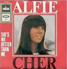 Rather than utilize Black's version, United Artists commissioned a new version of the song "Alfie" by the 20-year-old American singer/actress Cher, who was on the roster of Imperial Records. Cher recorded the song at Gold Star Studios, in a rendition produced by her then-husband Sonny Bono, which followed a similar production style to that of Phil Spector. Cher's version of "Alfie" was released at the end of June 1966, almost two months prior to the film's US premiere (August 25, 1966). Despite being the follow-up to her #2 hit "Bang Bang (My Baby Shot Me Down)", "Alfie" rose no higher than #32.[10] It was also a top 40 hit in Canada, reaching #36.[11]