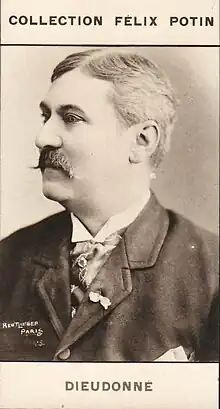 Alphonse Emile Alfred Dieudonné, called simply Dieudonné, (12 January 1834[1] in the 1st arrondissement of Paris - 1922 in Paris), after one of the longest careers of the French scene.