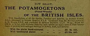 Advertisement for Fryer's book The Potamogetons (pond weeds) of the British Isles