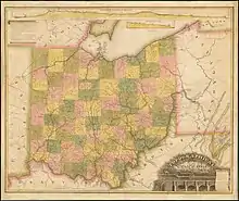 In 1816, the state of New York asked the state of Ohio's aid in building the Erie Canal. The request was referred to the Ohio House committee on public works, which was chaired by Kelley. He wrote a report endorsing the project, but the Ohio General Assembly did not act on New York's request.[55] Kelley and others came to believe that a canal linking the Ohio River with Lake Erie would greatly benefit Ohio. They frequently communicated with New York Governor DeWitt Clinton and those building the Erie Canal, and circulated glowing reports about construction progress and the ease with which financing was obtained. They also worked to build a coalition strong enough to overcome parochial opposition to an Ohio canal.[42]