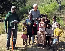 Kröner in Swaziland in 2013 with geologist Emmanuel and local kids