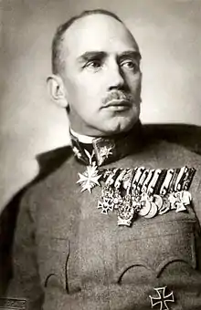 Early on in the war he served on the staff of General Viktor Dankl von Krasnik during the Battle of Galicia, later serving on the Italian Front in 1915 as commander of XX Corps.[1][2] In the summer of 1916, Waldstätten briefly served as the chief of staff for the 12th Army[3] as well as Army Group Archduke Karl, commanded by the future emperor of Austria-Hungary,[2] but was replaced by German officer Hans von Seeckt after a month.[4]
