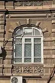 The main volumetric elements of the building define the portal of the main entrance and the balcony-shushebend (glazed veranda) on the second floor. The entrance's portal consists of a two-column composition of the Corinthian order with the corresponding elements of a plastic nature. The entrance is directly emphasized by a semicircular arch, double-leaf door leaves. On the facade, the portal convincingly enters and actively participates in shaping the volumetric system of the stone plastics. The preservation of the edifices aesthetic value is largely facilitated by the architectural details, the so-called elements of the second order.[2]