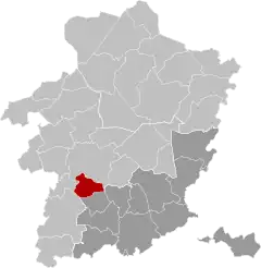 Alken (Dutch pronunciation: [ˈɑlkə(n)] ⓘ; Limburgish: Alleke [ˈɑləkə]) is a municipality located in Belgian province of Limburg. The community lies just south of the provincial capital of Hasselt, in the Hesbaye region. Alken has about 11,300 residents, which gives the village a larger population than the nearby small cities of Borgloon and Herk-de-Stad.