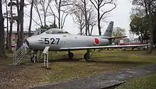 The ANA airliner was a Boeing 727-281[note 1] with registration JA8329; it was three months old at the time of the accident.[5] The JASDF aircraft, belonging to the 1st Air Wing at Matsushima Airbase,[4] was a Mitsubishi F-86F Sabre, a Japanese-built version of North American Aviation's famous fighter jet, with tail number 92-7932. At the time of the accident, the F-86F was one of the primary aircraft in the JASDF's inventory.