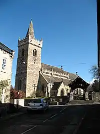 The church is built of magnesian limestone and has a pitched slate roof. The church has a tower to its western side with a spire atop. The tower has three offset stages, a round-headed window and clocks on the southern, northern and western face.[1] The church has an ornate lychgate on the southern side of its boundaries.