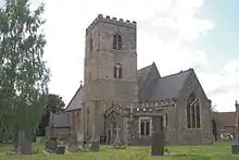 All Saints Church is in the village of Long Whatton, Leicestershire, England. It is an active Anglican parish church in the deanery of Akeley East, the archdeaconry of Loughborough, and the diocese of Leicester.[1] The church is recorded in the National Heritage List for England as a designated Grade II* listed building.[2] It dates mainly from the 14th century, with a tower dating from the late 12th or early 13th century, and its upper stage added in the 15th or 16th century. The church was partly rebuilt in 1865–66.[2] In 1931 the Lancaster architect Henry Paley of Austin and Paley added a baptistry as a memorial to Lord Crawshaw.[3]