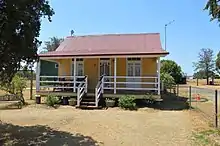 In 1885 the school committee requested additions to the teacher's residence for the construction of two new rooms. The committee had been successful in raising £21 to contribute to the cost of the extensions.[36] This, and the addition of a new chimney had been completed by June 1886.[32] The two new rooms were added to the front of the residence, with the original two rooms becoming the rear gabled section of the building. The front verandah was shifted from the original section to the front of the new addition.[37][38] In 1896 both the school building and residence had their roofs sheeted with corrugated iron. In 1930 the teaching building's timber floor, which was in great need of repair, was replaced.[39][40][1]
