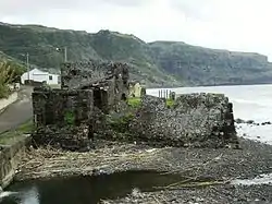 The lands of the northern plateau of the parish were recorded as the most productive on the island, with extensive fields that produced wheat; Lieutenant-Colonel José Carlos Figueiredo, writing in 1815, while in service on the island noted: "...site of the best lands, in squared fields and a good plain of orchards...".[3] The first primary school began offering classes in 1864.[5] The ex-Constitution, Canarias, known locally as the sunken boat, was a Spanish-registered ship, which, on 13 November 1871, sunk in Praia Bay.