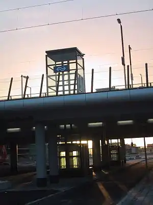 Almere Oostvaarders is a railway station in Almere, Netherlands. It is located 29 km (18.0 mi) east of Amsterdam, on the Amsterdam - Almere - Lelystad main line. It is approximately 3 km (1.9 mi) northeast of the Almere city centre. Almere Oostvaarders railway station opened on 12 December 2004.