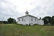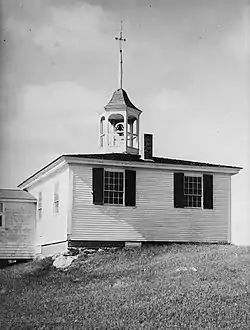The Alna School is located in central Alna, a rural community in Lincoln County, Maine. It is set on the west side of Alna Road (Maine State Route 218), north of its junction with Golden Ridge Road and south of the historic Alna Meetinghouse. The school is a single story wood-frame structure, with a low-pitch hipped roof topped by an open octagonal cupola with bell. Its exterior is finished in wooden clapboards, and it rests on a brick foundation. There are two windows on each side, with the main entrance set near one corner. A small single story addition, of 20th-century origin, has been added.[2]
