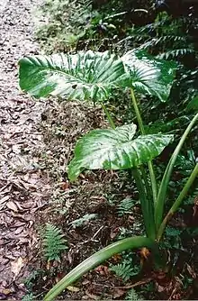 Alocasia brisbanensis, commonly known as cunjevoi[lower-alpha 1] or spoon lily,[1][2][4] is a species of plant in the family Araceae native to rainforests of eastern Australia. The common name "cunjevoi" derives from the Bundjalung language of northern New South Wales.[5]